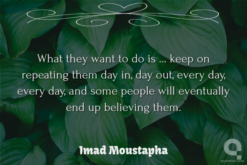What they want to do is ... keep on repeating them day in, day out, every day, every day, and some people will eventually end up believing them. Imad Moustapha