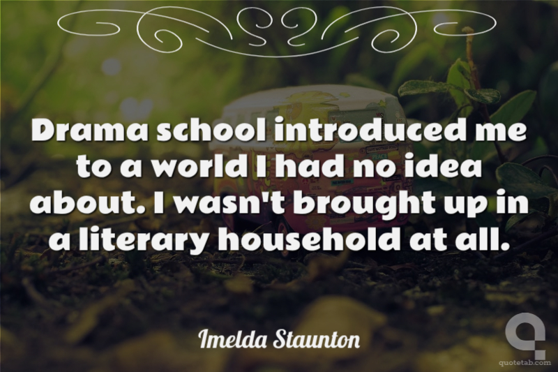 Drama school introduced me to a world I had no idea about. I wasn't brought up in a literary household at all. Imelda Staunton