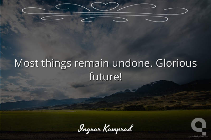 Most things remain undone. Glorious future! Ingvar Kamprad