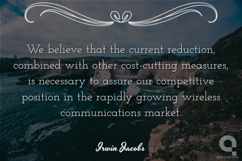 We believe that the current reduction, combined with other cost-cutting measures, is necessary to assure our competitive position in the rapidly growing wireless communications market. Irwin Jacobs