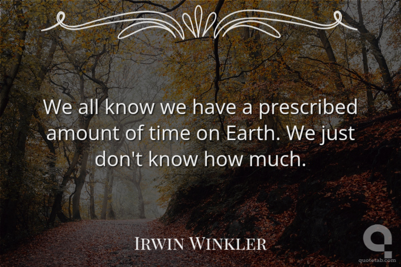 We all know we have a prescribed amount of time on Earth. We just don't know how much. Irwin Winkler