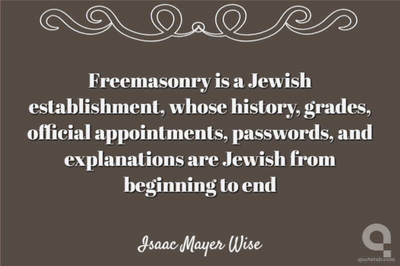 Freemasonry is a Jewish establishment, whose history, grades, official appointments, passwords, and explanations are Jewish from beginning to end Isaac Mayer Wise