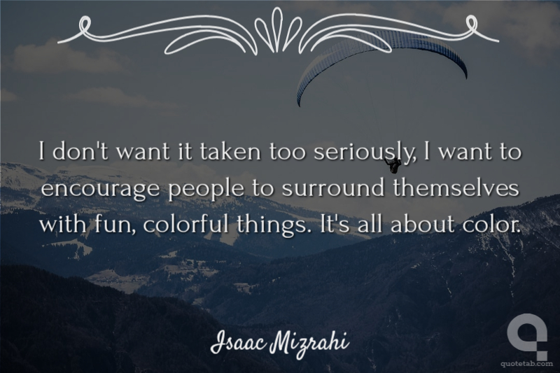 I don't want it taken too seriously, I want to encourage people to surround themselves with fun, colorful things. It's all about color. Isaac Mizrahi