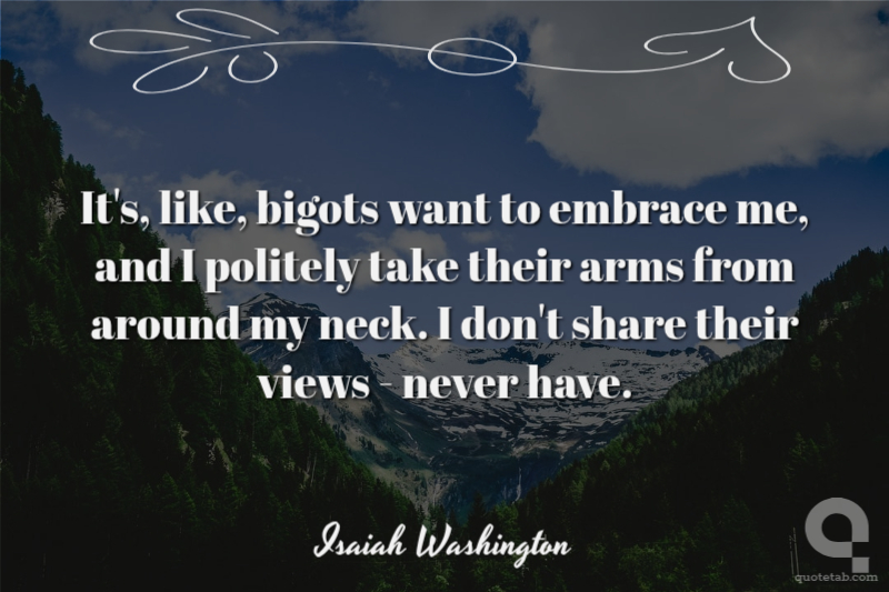 It's, like, bigots want to embrace me, and I politely take their arms from around my neck. I don't share their views - never have. Isaiah Washington
