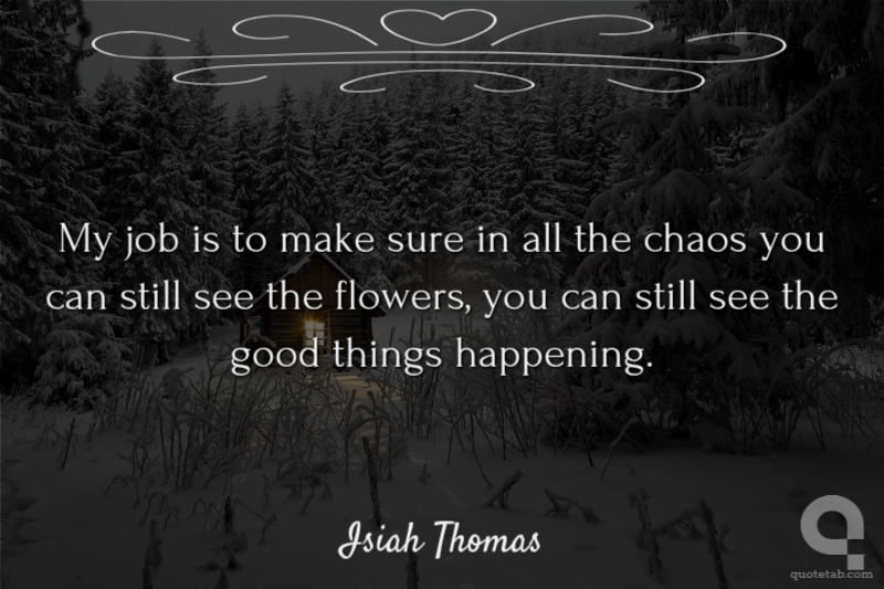 My job is to make sure in all the chaos you can still see the flowers, you can still see the good things happening. Isiah Thomas