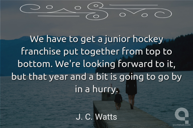 We have to get a junior hockey franchise put together from top to bottom. We're looking forward to it, but that year and a bit is going to go by in a hurry. J. C. Watts