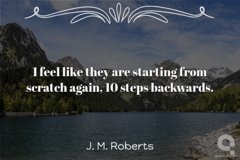 I feel like they are starting from scratch again, 10 steps backwards. J. M. Roberts