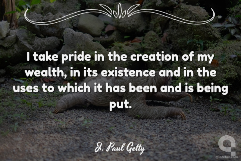 I take pride in the creation of my wealth, in its existence and in the uses to which it has been and is being put. J. Paul Getty