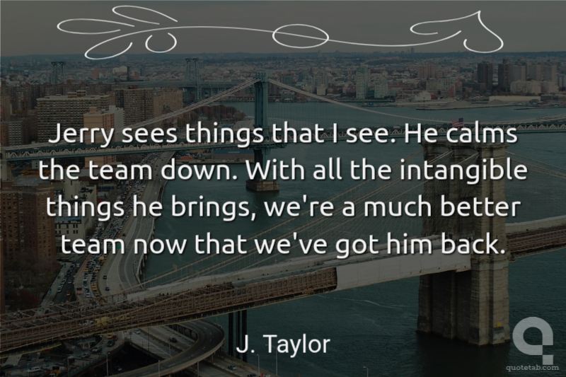 Jerry sees things that I see. He calms the team down. With all the intangible things he brings, we're a much better team now that we've got him back. J. Taylor