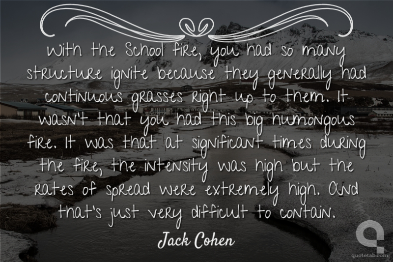 With the School fire, you had so many structure ignite because they generally had continuous grasses right up to them. It wasn't that you had this big humongous fire. It was that at significant times during the fire, the intensity was high but the rates of spread were extremely high. And that's just very difficult to contain. Jack Cohen