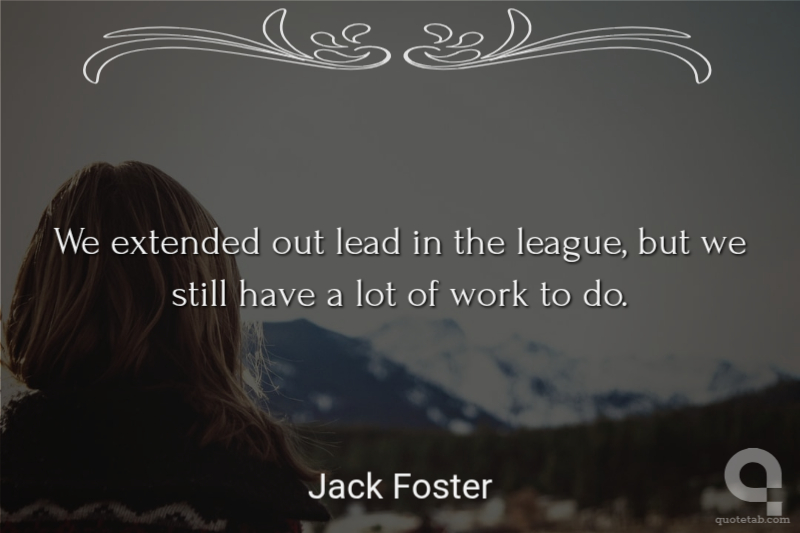 We extended out lead in the league, but we still have a lot of work to do. Jack Foster