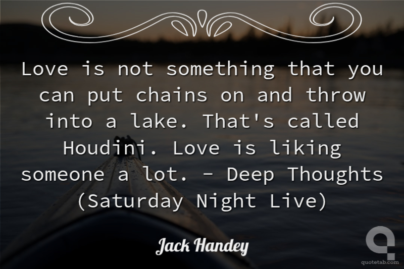Love is not something that you can put chains on and throw into a lake. That's called Houdini. Love is liking someone a lot. - Deep Thoughts (Saturday Night Live) Jack Handey