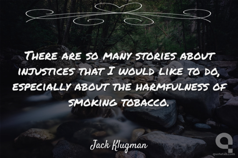 There are so many stories about injustices that I would like to do, especially about the harmfulness of smoking tobacco. Jack Klugman