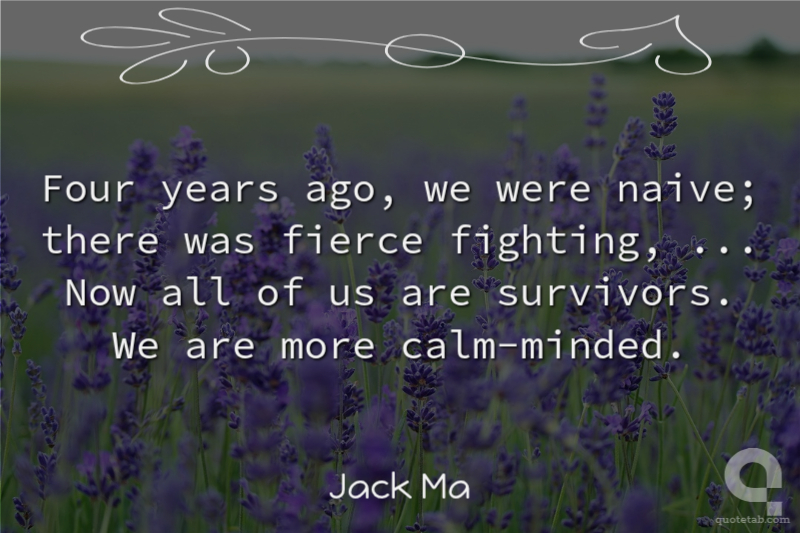 Four years ago, we were naive; there was fierce fighting, ... Now all of us are survivors. We are more calm-minded. Jack Ma