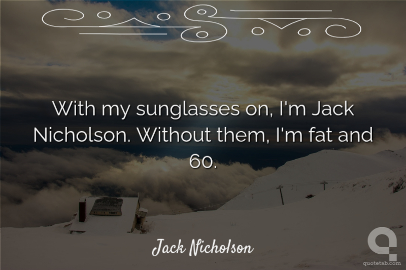 With my sunglasses on, I'm Jack Nicholson. Without them, I'm fat and 60. Jack Nicholson