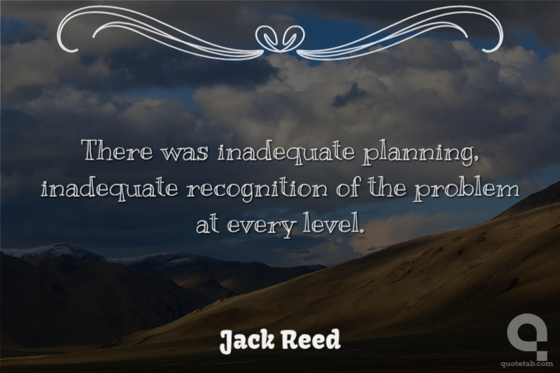 There was inadequate planning, inadequate recognition of the problem at every level. Jack Reed