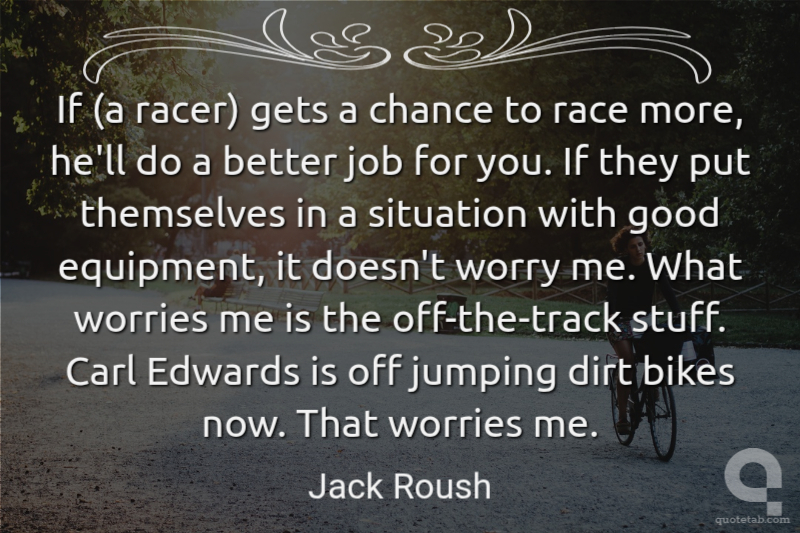 If (a racer) gets a chance to race more, he'll do a better job for you. If they put themselves in a situation with good equipment, it doesn't worry me. What worries me is the off-the-track stuff. Carl Edwards is off jumping dirt bikes now. That worries me. Jack Roush