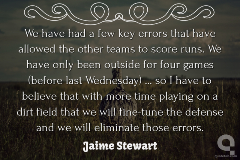 We have had a few key errors that have allowed the other teams to score runs. We have only been outside for four games (before last Wednesday) ... so I have to believe that with more time playing on a dirt field that we will fine-tune the defense and we will eliminate those errors. Jaime Stewart