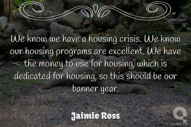 We're in a severe housing crisis, and there's no reason for it. We've got the resources, we just need to appropriate them. Jamie Ross