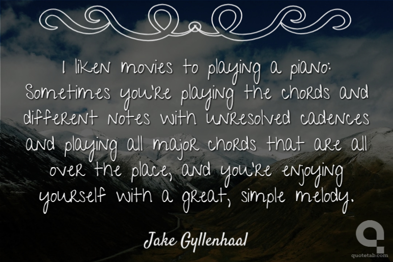I liken movies to playing a piano: Sometimes you're playing the chords and different notes with unresolved cadences and playing all major chords that are all over the place, and you're enjoying yourself with a great, simple melody. Jake Gyllenhaal