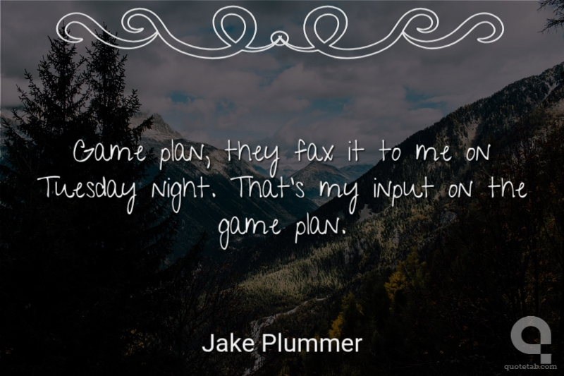 Game plan, they fax it to me on Tuesday night. That's my input on the game plan. Jake Plummer