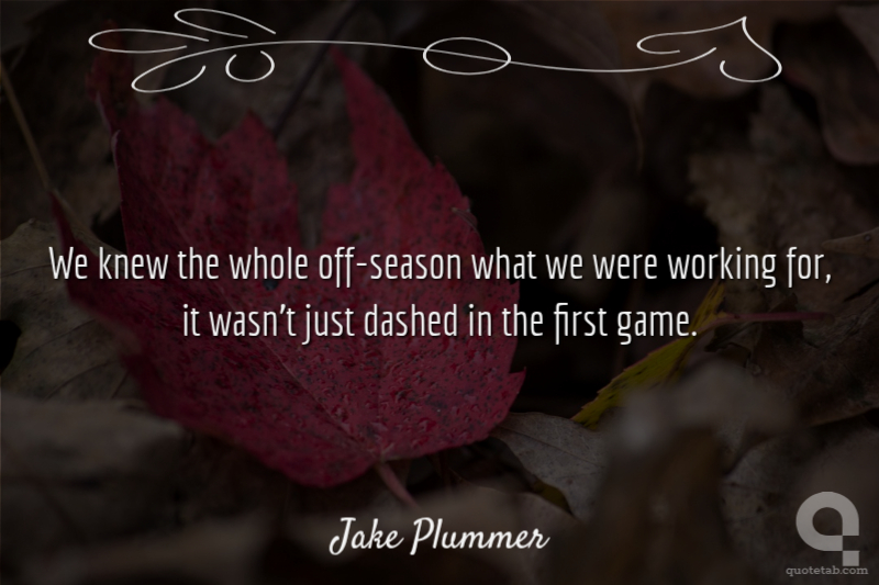 We knew the whole off-season what we were working for, it wasn't just dashed in the first game. Jake Plummer