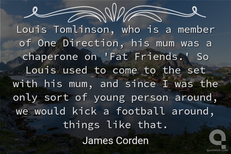 Louis Tomlinson, who is a member of One Direction, his mum was a chaperone on 'Fat Friends.' So Louis used to come to the set with his mum, and since I was the only sort of young person around, we would kick a football around, things like that. James Corden