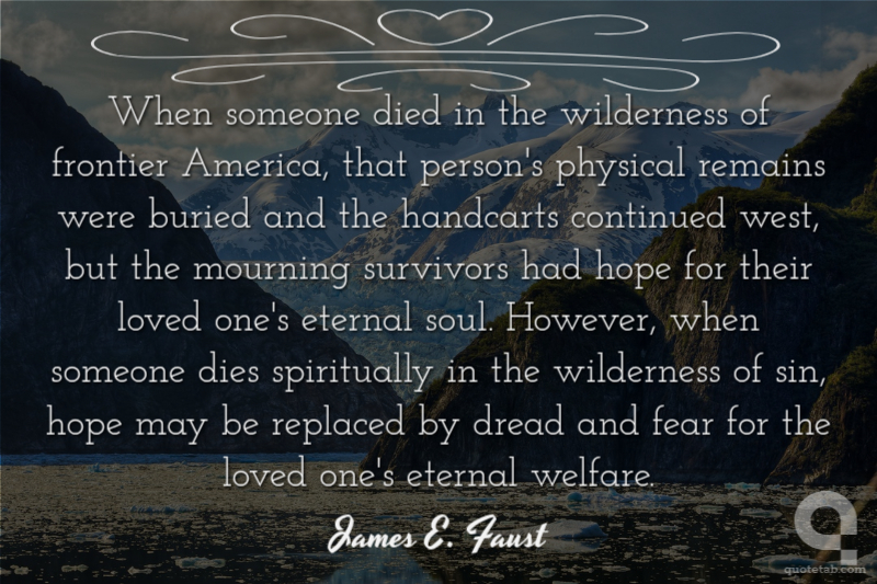 When someone died in the wilderness of frontier America, that person's physical remains were buried and the handcarts continued west, but the mourning survivors had hope for their loved one's eternal soul. However, when someone dies spiritually in the wilderness of sin, hope may be replaced by dread and fear for the loved one's eternal welfare. James E. Faust
