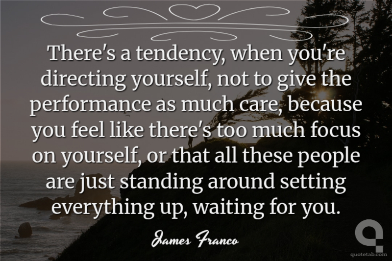 There's a tendency, when you're directing yourself, not to give the performance as much care, because you feel like there's too much focus on yourself, or that all these people are just standing around setting everything up, waiting for you. James Franco