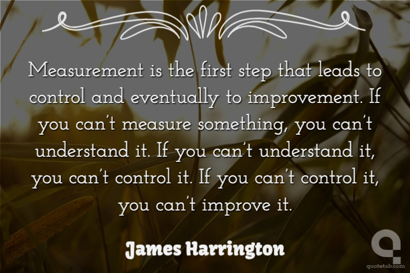 Measurement is the first step that leads to control and eventually to improvement. If you can’t measure something, you can’t understand it. If you can’t understand it, you can’t control it. If you can’t control it, you can’t improve it. James Harrington
