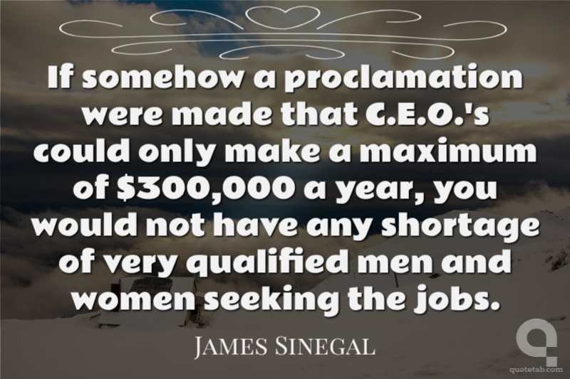 If somehow a proclamation were made that C.E.O.'s could only make a maximum of $300,000 a year, you would not have any shortage of very qualified men and women seeking the jobs. James Sinegal