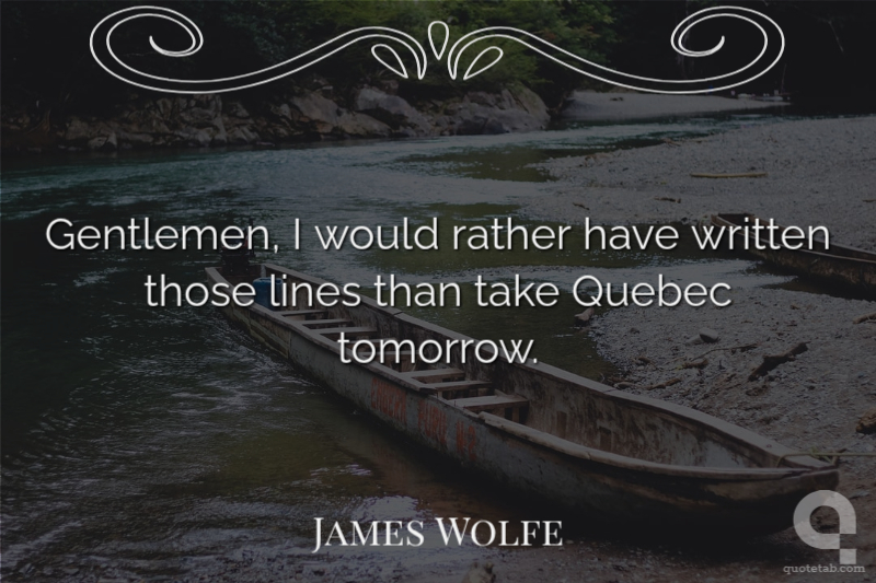 Gentlemen, I would rather have written those lines than take Quebec tomorrow. James Wolfe