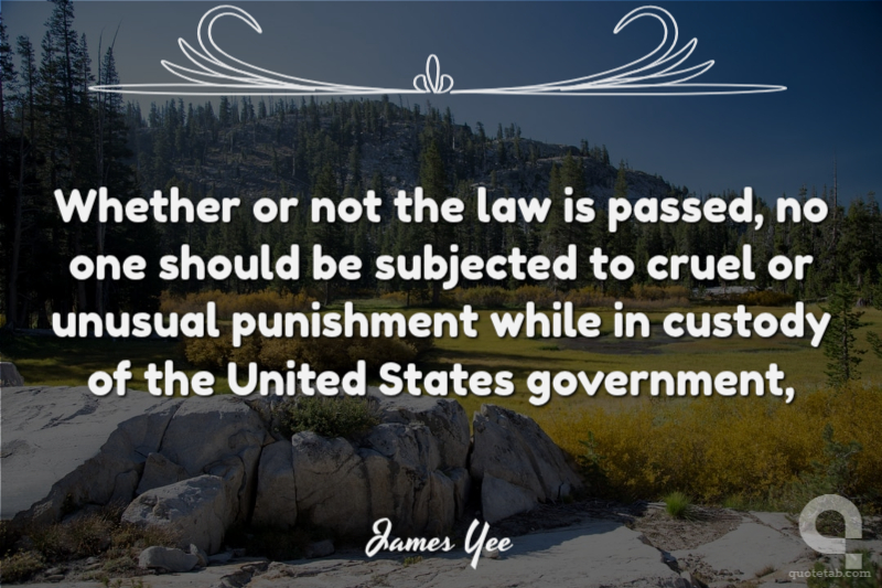 Whether or not the law is passed, no one should be subjected to cruel or unusual punishment while in custody of the United States government, James Yee