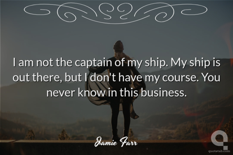 I am not the captain of my ship. My ship is out there, but I don't have my course. You never know in this business. Jamie Farr