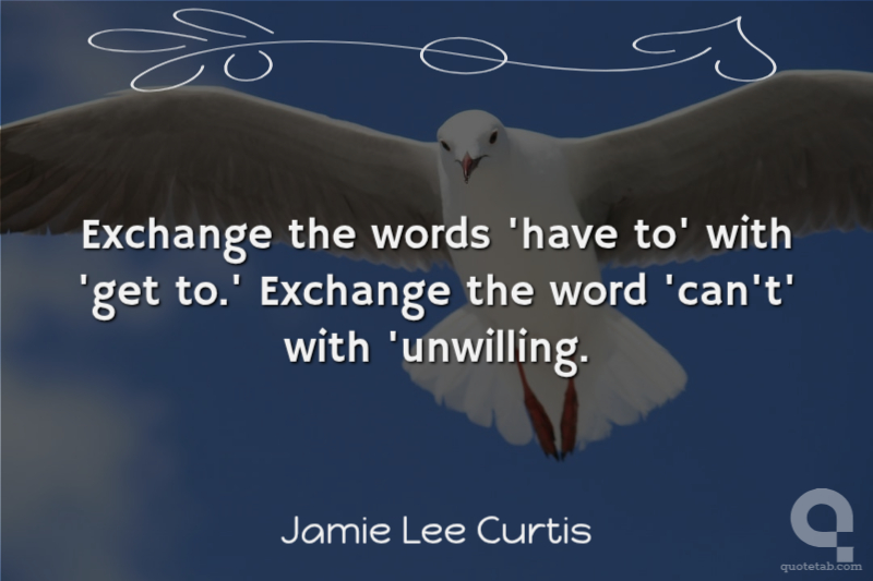 Jamie Lee Curtis Exchange the words 'have to' with 'get to.' Exchange the word 'can't' with 'unwilling.