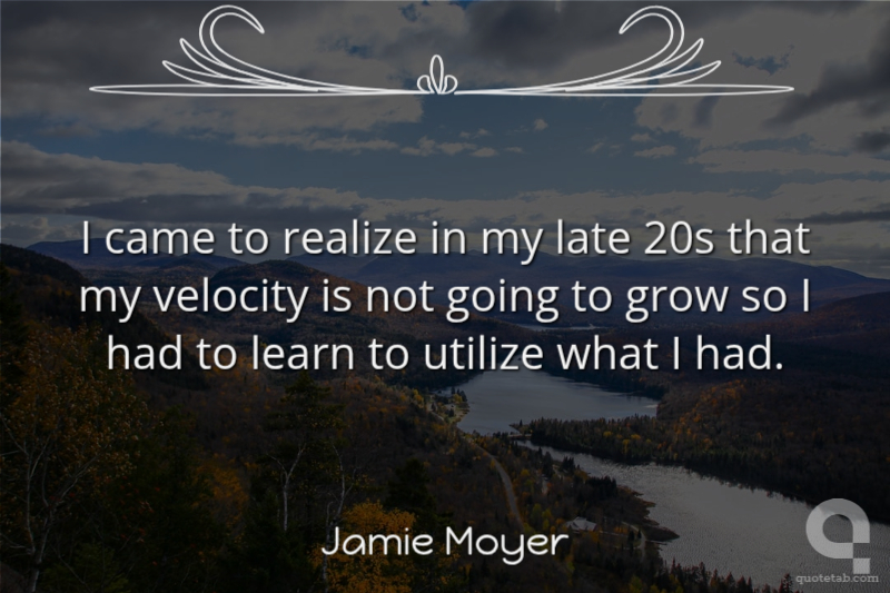 I came to realize in my late 20s that my velocity is not going to grow so I had to learn to utilize what I had. Jamie Moyer