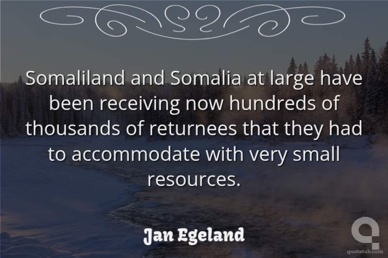 Somaliland and Somalia at large have been receiving now hundreds of thousands of returnees that they had to accommodate with very small resources. Jan Egeland