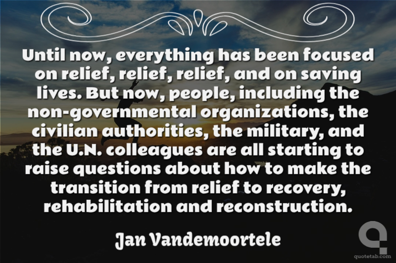 Until now, everything has been focused on relief, relief, relief, and on saving lives. But now, people, including the non-governmental organizations, the civilian authorities, the military, and the U.N. colleagues are all starting to raise questions about how to make the transition from relief to recovery, rehabilitation and reconstruction. Jan Vandemoortele
