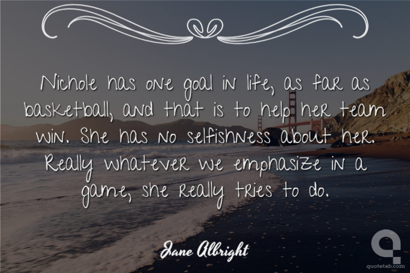 Nichole has one goal in life, as far as basketball, and that is to help her team win. She has no selfishness about her. Really whatever we emphasize in a game, she really tries to do. Jane Albright