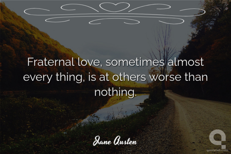 Fraternal love, sometimes almost every thing, is at others worse than nothing. Jane Austen