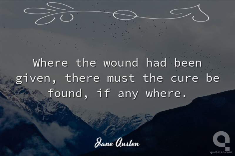 Where the wound had been given, there must the cure be found, if any where. Jane Austen