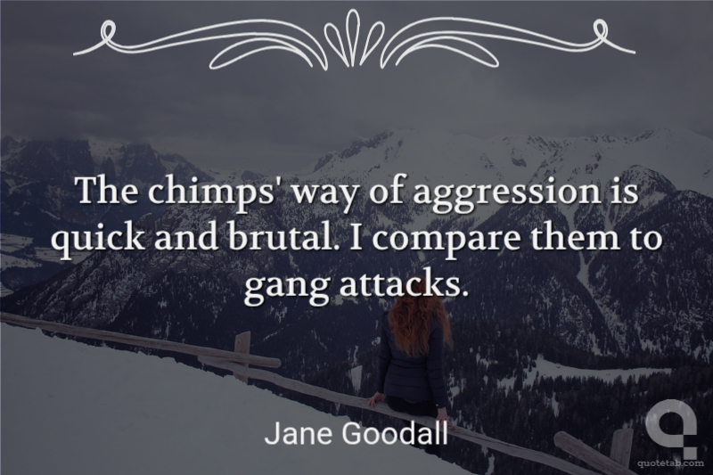 The chimps' way of aggression is quick and brutal. I compare them to gang attacks. Jane Goodall