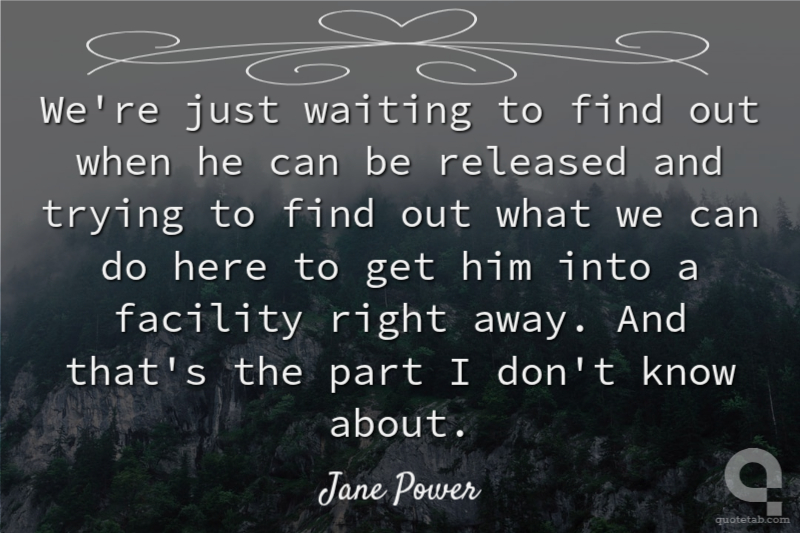 We're just waiting to find out when he can be released and trying to find out what we can do here to get him into a facility right away. And that's the part I don't know about. Jane Power