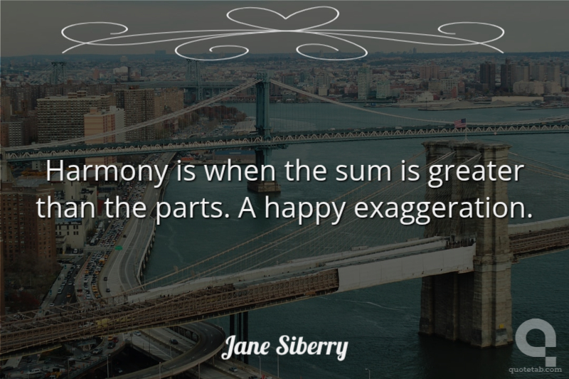 Harmony is when the sum is greater than the parts. A happy exaggeration. Jane Siberry
