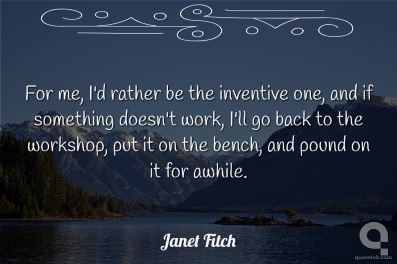 For me, I'd rather be the inventive one, and if something doesn't work, I'll go back to the workshop, put it on the bench, and pound on it for awhile. Janet Fitch