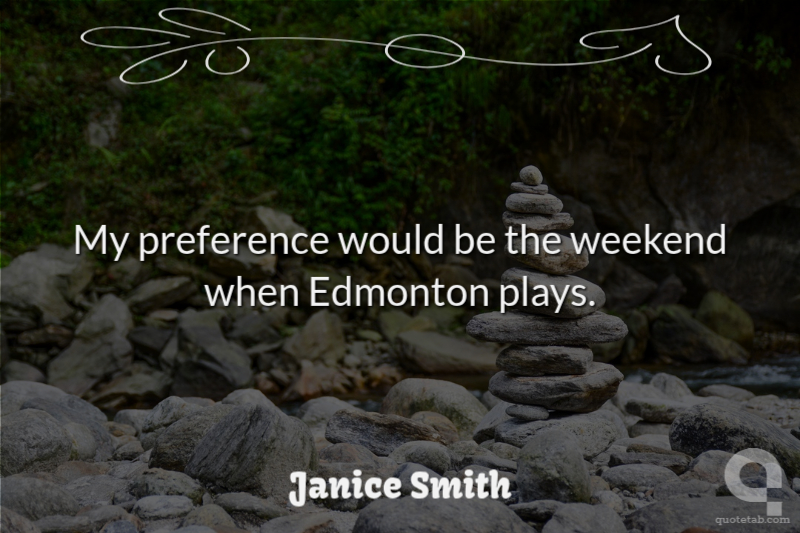My preference would be the weekend when Edmonton plays. Janice Smith