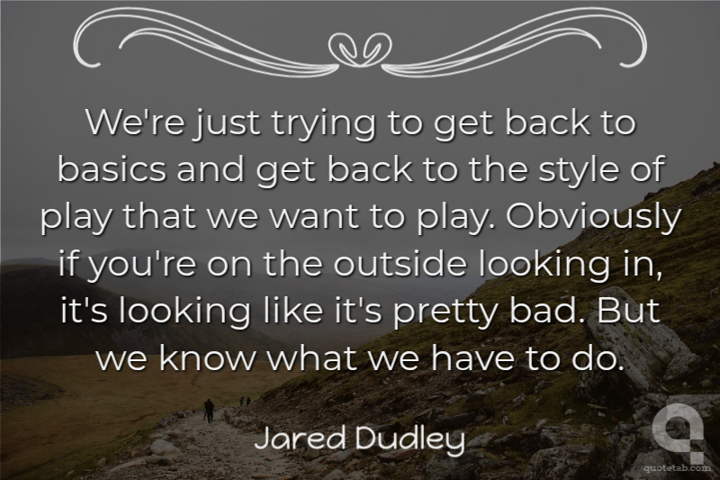 We're just trying to get back to basics and get back to the style of play that we want to play. Obviously if you're on the outside looking in, it's looking like it's pretty bad. But we know what we have to do. Jared Dudley