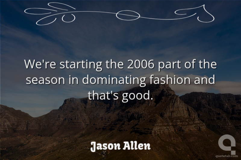We're starting the 2006 part of the season in dominating fashion and that's good. Jason Allen