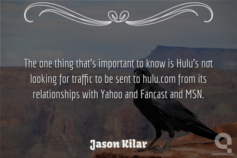 The one thing that's important to know is Hulu's not looking for traffic to be sent to hulu.com from its relationships with Yahoo and Fancast and MSN. Jason Kilar