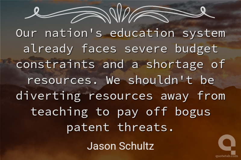 Our nation's education system already faces severe budget constraints and a shortage of resources. We shouldn't be diverting resources away from teaching to pay off bogus patent threats. Jason Schultz